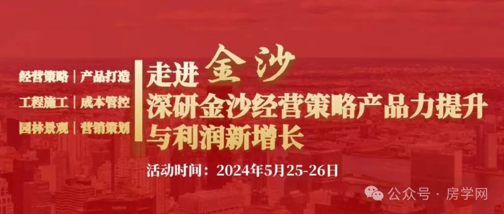 2024年5月25-26日房学网再次走进区域型深耕高品质房企---金沙集团,近距离多维度学习其经营理念、产品打造、盈利提升等核心执行策略,探索其行稳致远的发展逻辑!