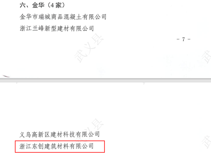 浙江东创建筑材料有限公司获评