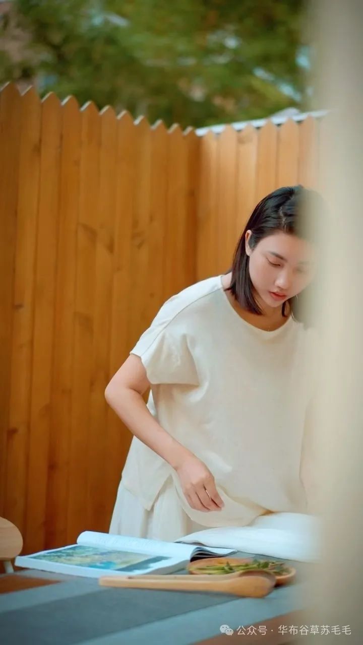 她喜欢茶艺,茶室的布置有禅意,她选择华布谷草棉麻女装,是喜欢我的服饰品牌理念:素念、素简、素朴。