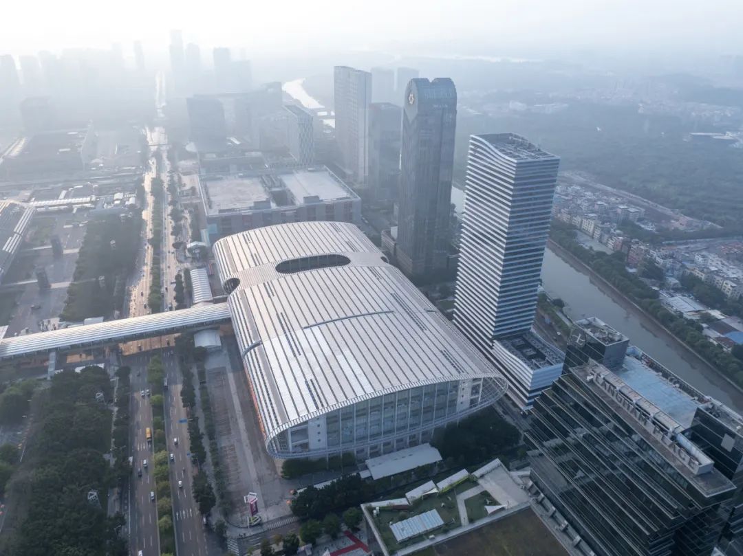 建筑整体还创新融入了“街区式”布局理念,与城市开放共享,疏导城市交通,促进区域发展。珠江散步道结合四期的江畔会展公园,使得广交会展馆不光是参展者专业高效的会展场地,也成为了市民舒适高品质的日常公共休闲场所。