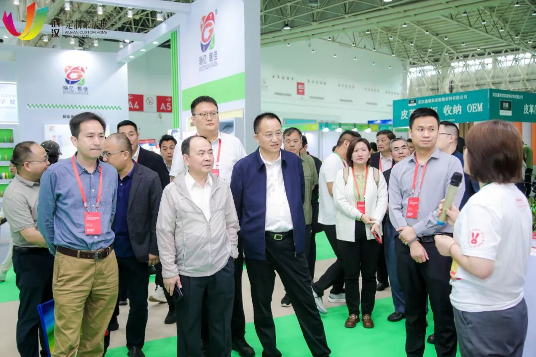 继临沂全屋定制展之后,多乐兔在本次展会上再次受到领导高度关注。中国木材保护协会会长刘能文、湖北省林业局(二级巡视员)伍育清、蔡甸区投资促进中心副主任周阳等领导亲临展位,杨彦丽董事长做了详细汇报。