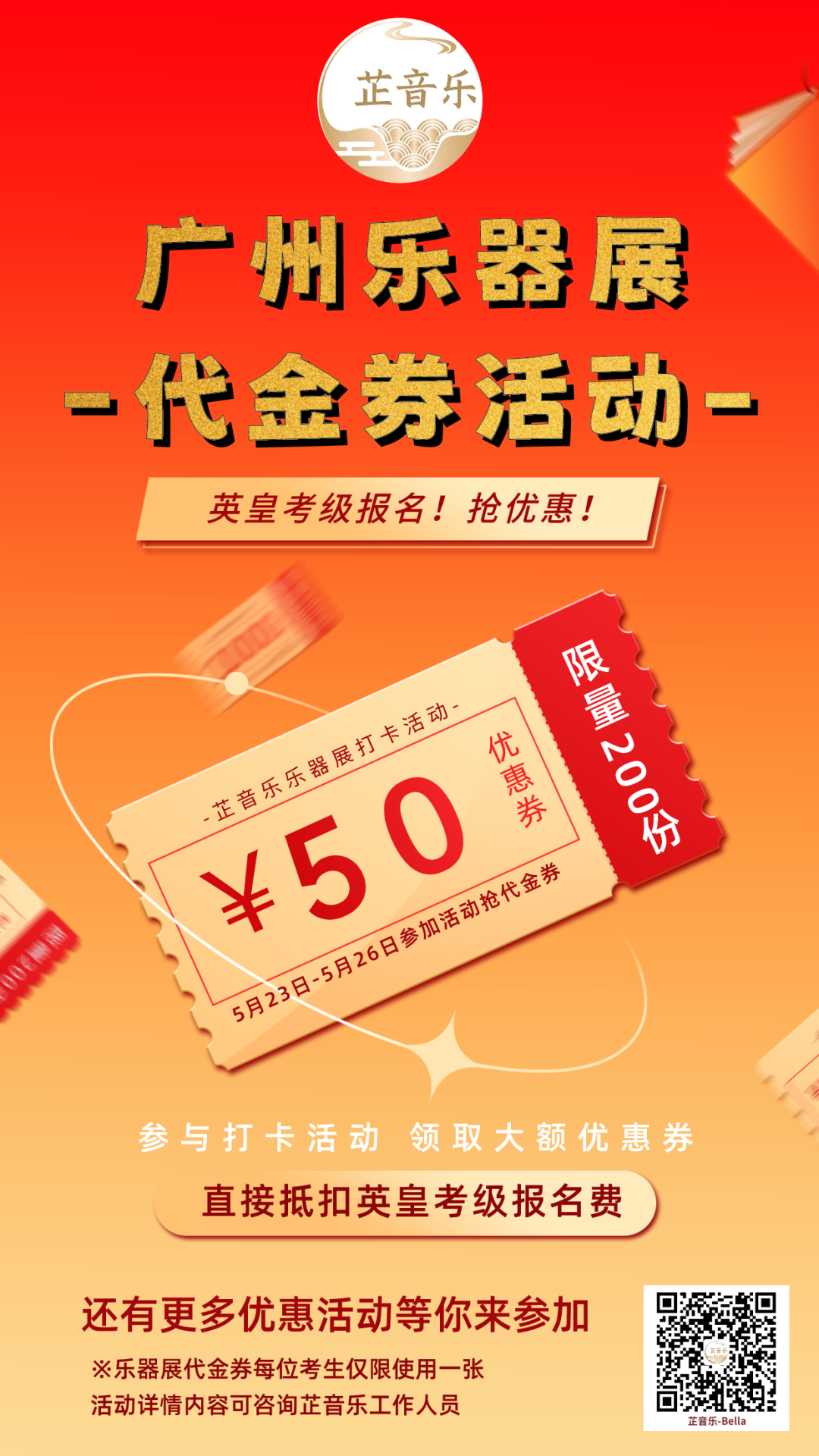 凭芷音乐邀请卡的观众可以领取特别准备的礼品包,另可领取一张价值50元的英皇考级代金券,可用于抵扣未来考级费用。