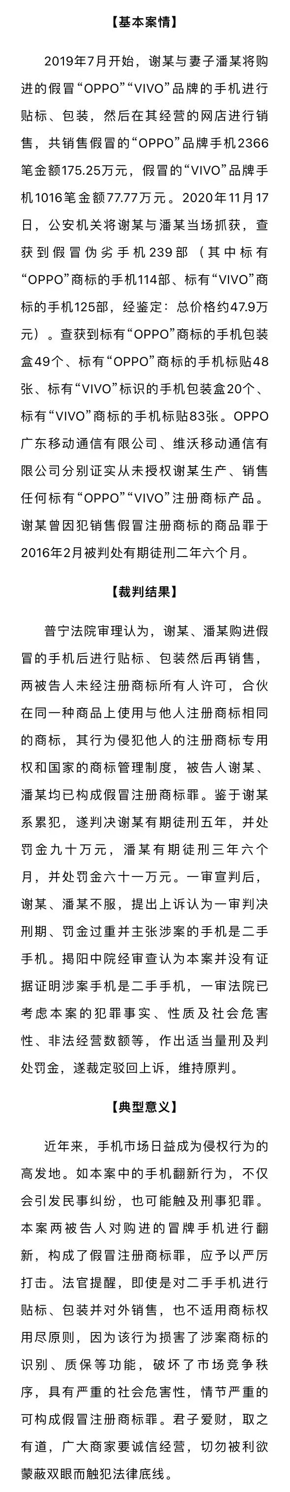 获利数百万!潮汕夫妻销售假冒品牌手机被判刑