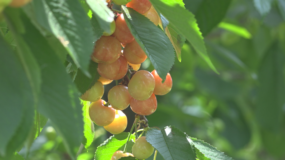 据郁耀辉介绍,他种樱桃不光是凭出蛮力,这里头也有很多门道。比如在樱桃品种的选育上,他就选择了成熟期早、中、晚的5个品种口感好的樱桃进行种植。这样,可以延长樱桃的产出期,即便是遇到下雨这样的自然灾害,樱桃园子也不至于全军覆没。虽然前几天的阴雨天气给他的早熟樱桃带来了一些损失,但是他中、后期成熟的樱桃又将会弥补前期带来的损失。
