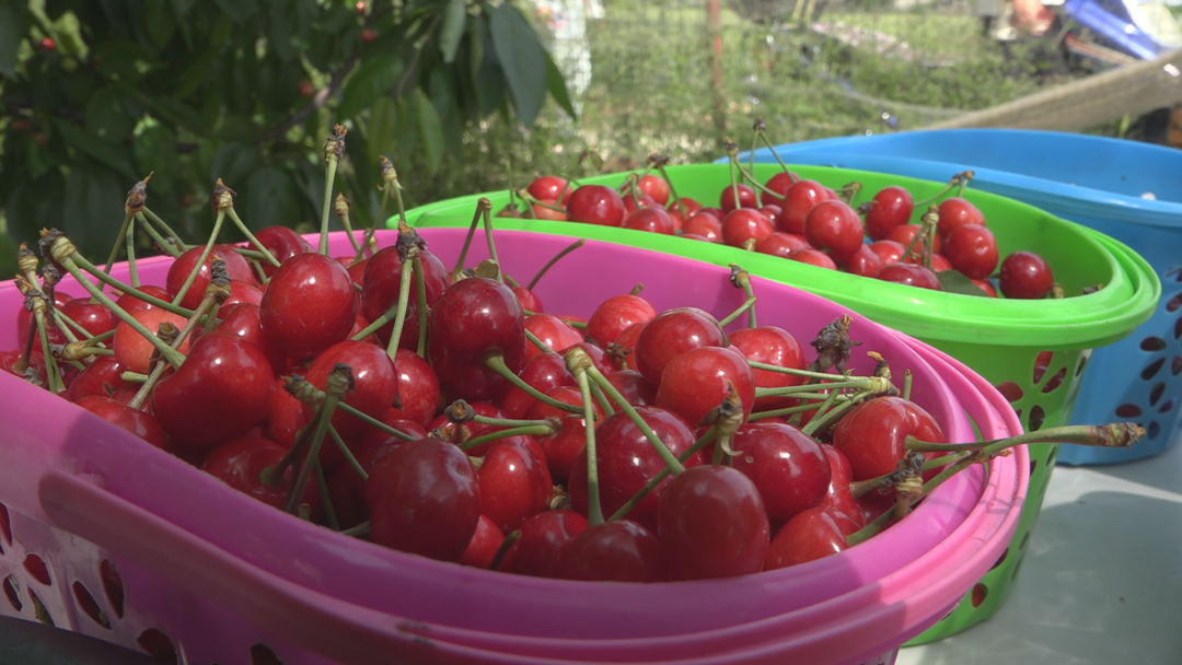 梅花村果农:我这个园子有十亩地,现在樱桃已经成熟了。在“五一”期间大量游客进园采摘。这是在村干部和驻村干部的引导和帮扶下栽植成功的。目前,通过线上、线下销售,量也挺大,经济收入也非常可观。我对今后的生活充满了信心,欢迎大家来梅花村观光采摘。