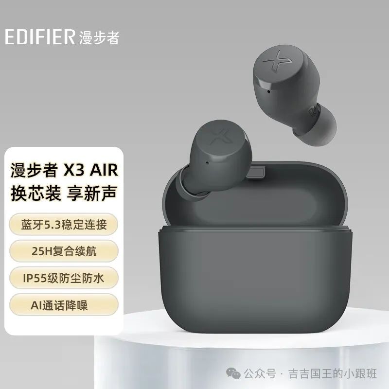 漫步者(EDIFIER)X3 Air 真无线立体声蓝牙耳机是一款支持蓝牙 5.3 协议的耳机,采用通话降噪技术,可以有效减少环境噪音,提供清晰的通话质量。该耳机还具有低延迟游戏模式,可以提供更好的游戏体验。此外,该耳机还具有智能触控功能,可以通过轻触操作进行音量调节、音乐播放 / 暂停等操作。该耳机还具有长续航功能,可以提供长达 32 小时的续航时间。该耳机适用于苹果、华为、小米等手机,可以通过蓝牙连接进行使用。
