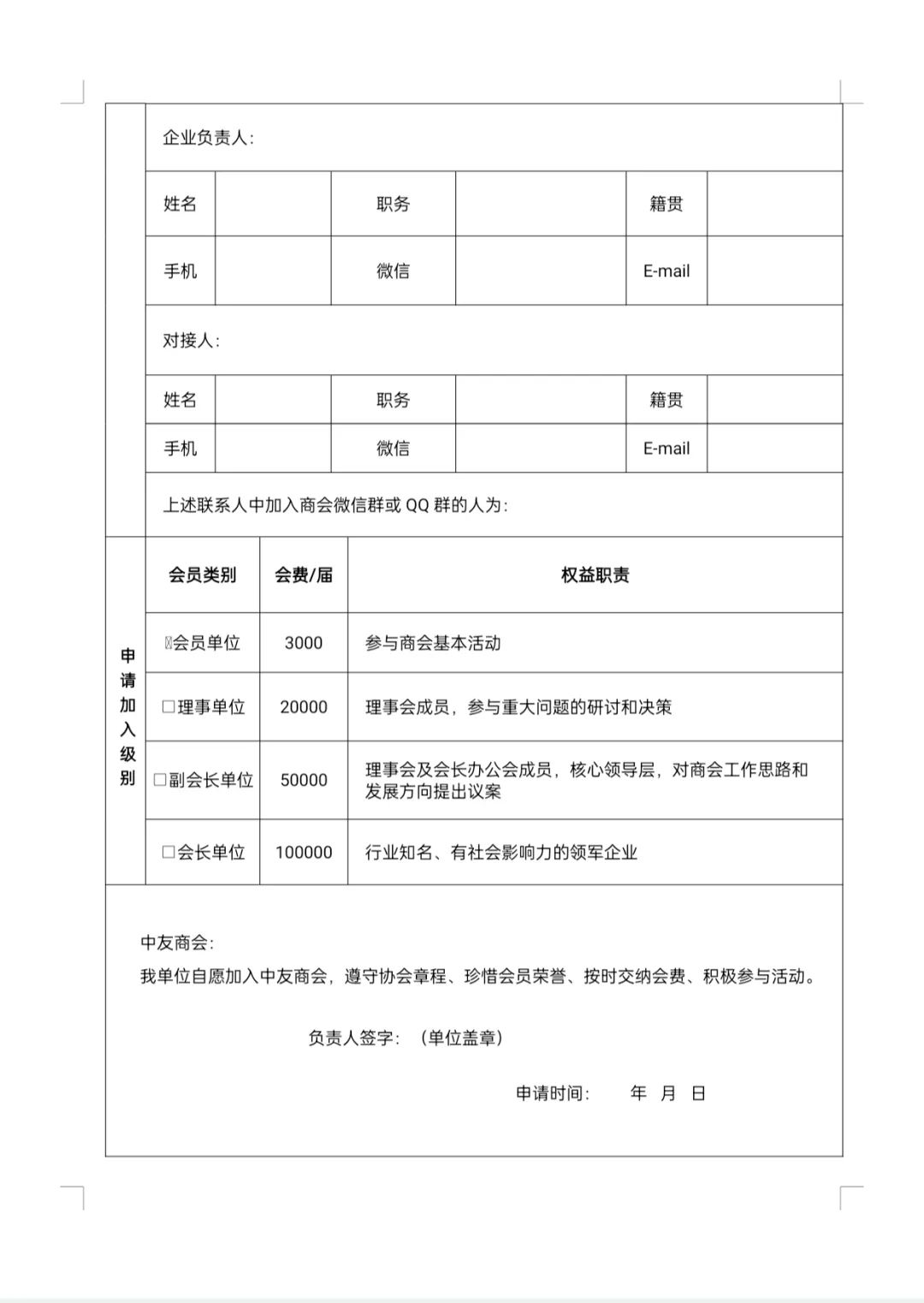 申请人填写入会申请表, 同时提供公司营业执照副本复印件、申请人身份证复印件、公司简介存档。