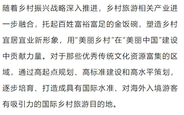开展文化产业赋能乡村振兴试点,是强化以城带乡、城乡互促,推动乡村人文资源和自然资源有效保护利用的有力举措;是促进一二三产业融合发展,贯通产加销、融合农文旅的重要工程;是传承发展农耕文明,激发优秀乡土文化活力的具体行动。