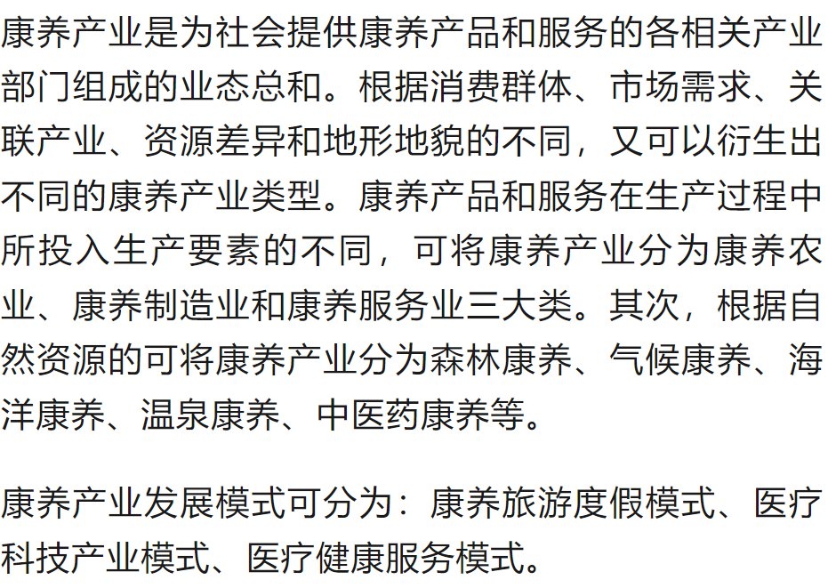 编者注:随着老龄化问题的加深与疫情之下人们对健康的高度关注,生态康养、休闲旅游、养生保健市场等热度逐渐升温,康养产业逐渐受到重视并迎来巨大的发展机遇,如市内的养老社区、城郊的康养小镇与乡村田园综合体等,它们依据自身的功能,分别落地在城、郊、村三大不同的区位,将康养产业与当地环境、资源禀赋深度融合,将为区域高质量发展打下坚实的基础。