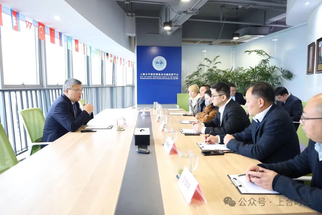 张光福副秘书长代表上海合作组织国家多功能经贸平台总干事、重庆市政协港澳台侨和外事委员会副主任胡开强欢迎戴晓杰一行。