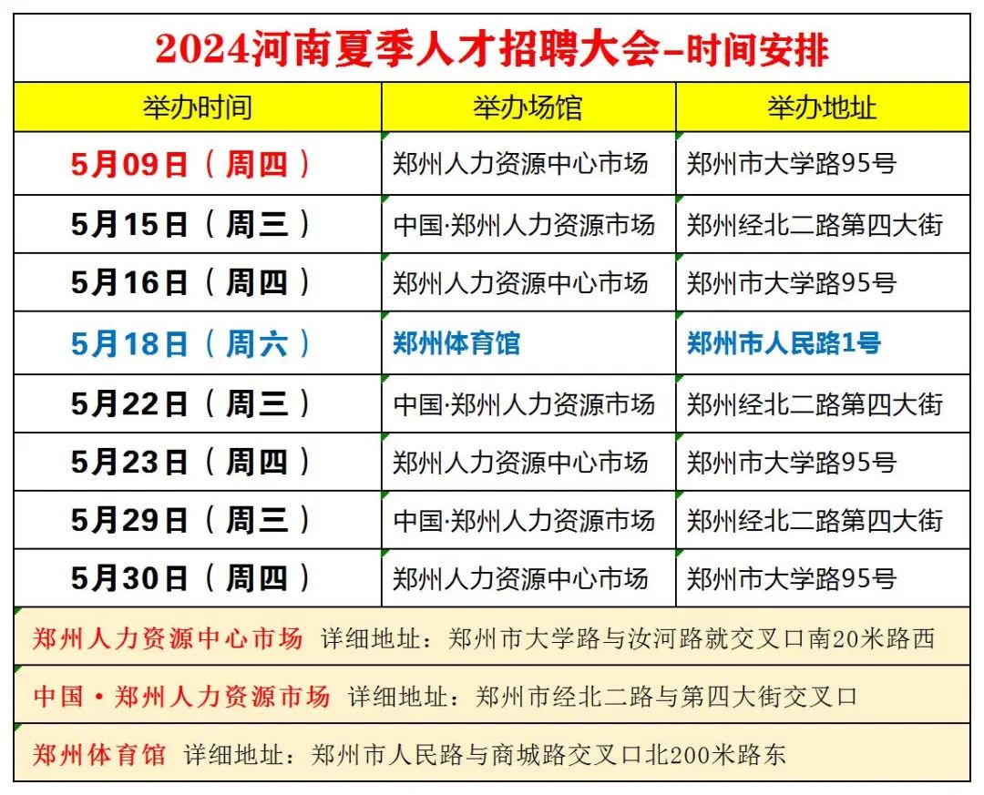 5月18日(周六)郑州市人民路1号