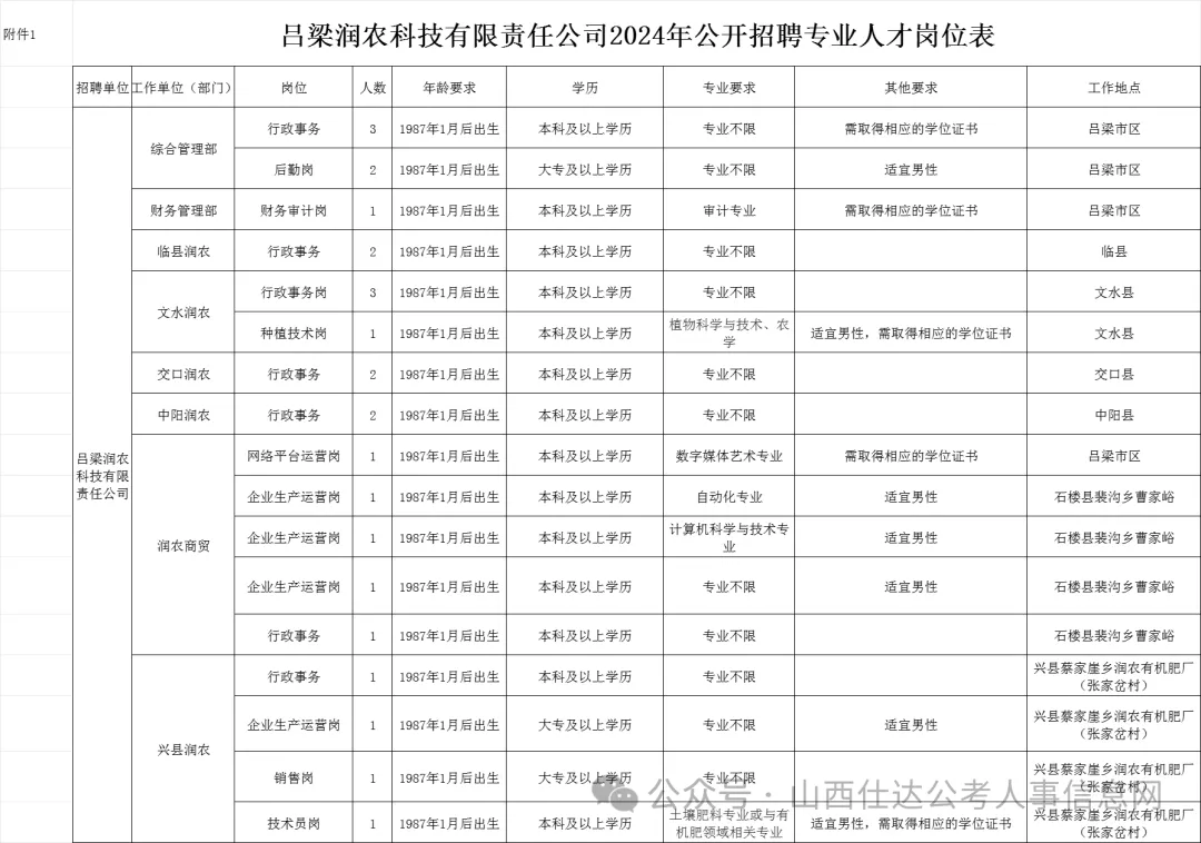 附件【1:《吕梁润农科技有限责任公司2024年公开招聘工作人员岗位表》.xls】