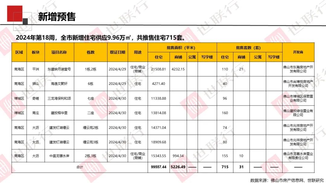 2024年第18周佛山房地产周报