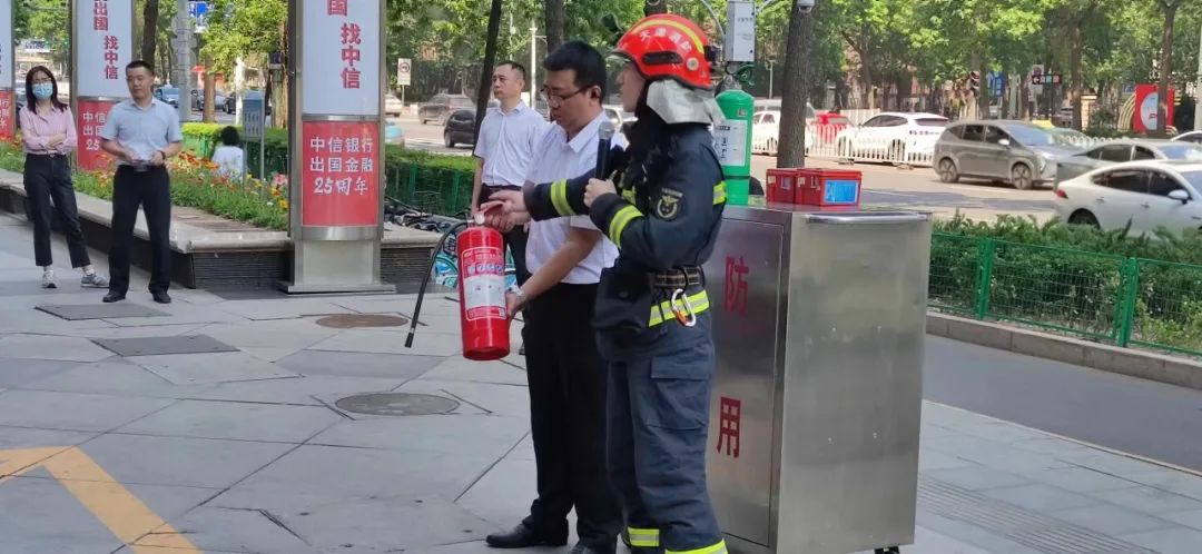 演练完毕后,和平支队西安道消防救援站的顾站长为大家讲解了火场逃生和灭火器、灭火毯、防毒面具等消防用具使用、高层建筑火场逃生疏散方法以及电动自行车电瓶入室充电危害性等安全知识并且进行了消火栓水枪出水和灭火器灭火的实操演练。