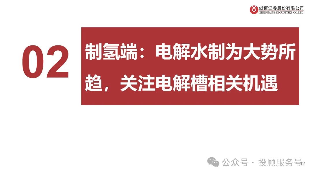 制氢端:电解水制为大势所趋,关注电解槽相关机遇