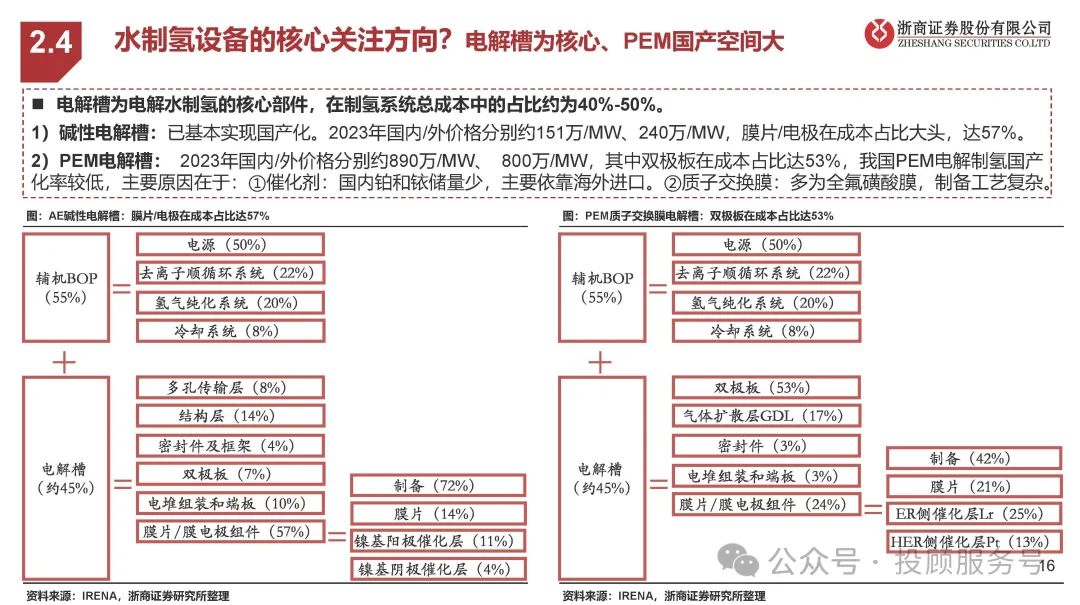 水制氢设备的核心关注方向?电解槽为核心、PEM国产空间大