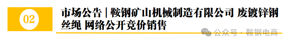 鞍钢矿山机械制造有限公司定于2024年5月13日在德邻循环平台(网址:http://xh.dllg56.com)进行废镀锌钢丝绳的网络竞价销售,现将具体事项公告如下: