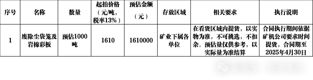 2、客户资质要求:本次竞价面向鞍钢电商平台注册的客户,参与客户在报名截止时间前平台对应的公告中点击“参加竞价”。