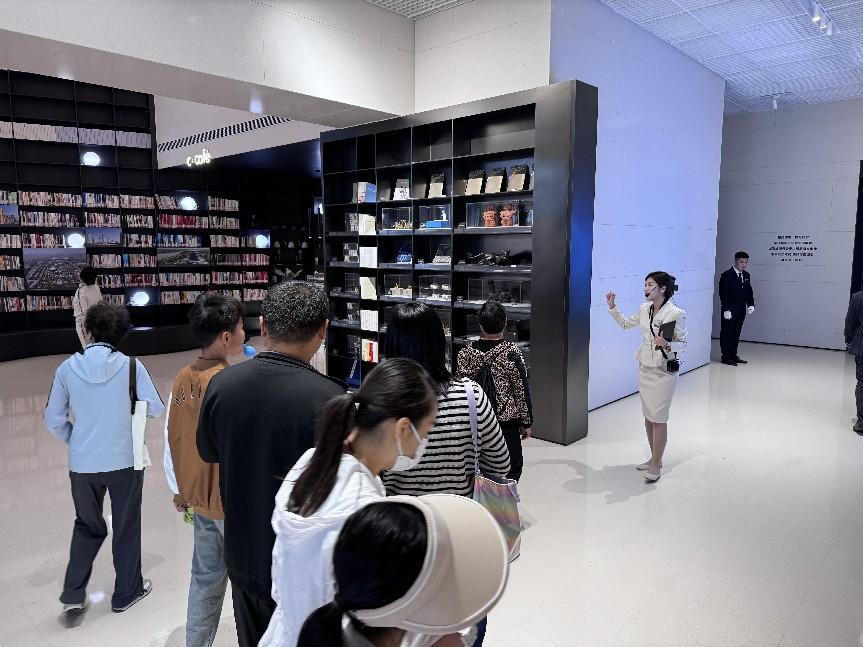 讲解员带领游客参观展示中心场馆