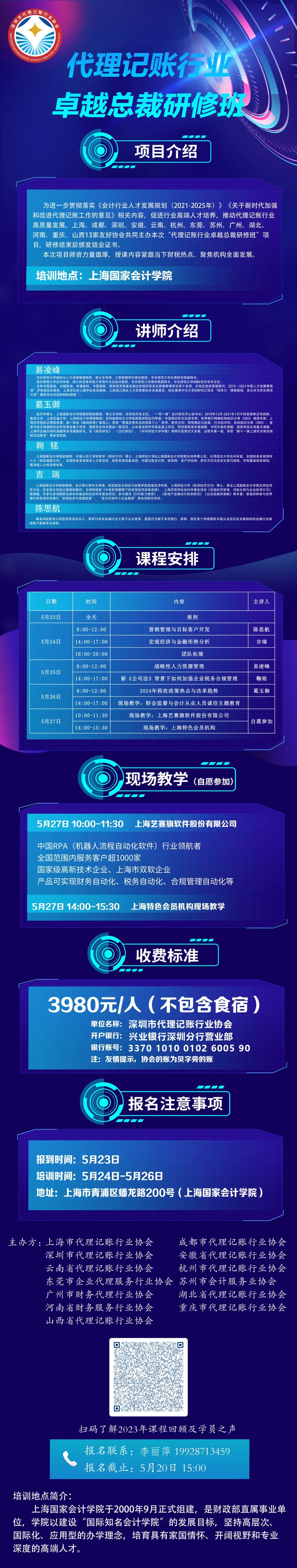 为进一步贯彻落实《会计行业人才发展规划(2021-2025年)》《关于新时代加强和改进代理记账工作的意见》相关内容,促进行业高端人才培养,推动代理记账行业高质量发展,上海、成都、深圳、安徽、云南、杭州、东莞、苏州、广州、湖北、河南、重庆、山西13家友好协会共同主办本次“代理记账行业卓越总裁研修班”项目。