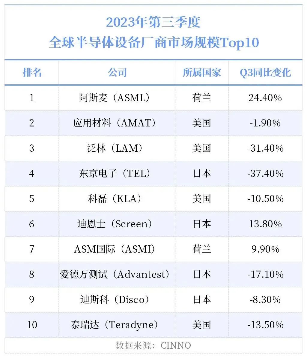 半导体设备商TOP10榜