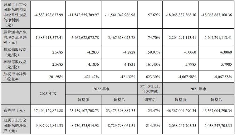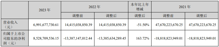 *ST正邦4月30日发布年度业绩报告称,2023年营业收入约69.92亿元,同比减少51.5%;归属于上市公司股东的净利润约85.29亿元;基本每股收益约2.57元。2022年同期营业收入约144.15亿元;归属于上市公司股东的净利润亏损约133.86亿元;基本每股收益亏损约4.28元。