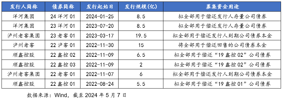 2022年开始,我们关注到白酒行业主要企业,已发行交易所公司债券的募集资金用途基本呈现为偿还到期或回售的公司债券本金,具体情况如下: