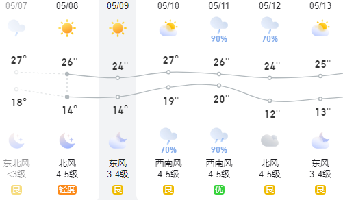 今日晴转多云,气温14-24度,东风3-4级,出门请做好防晒工作。