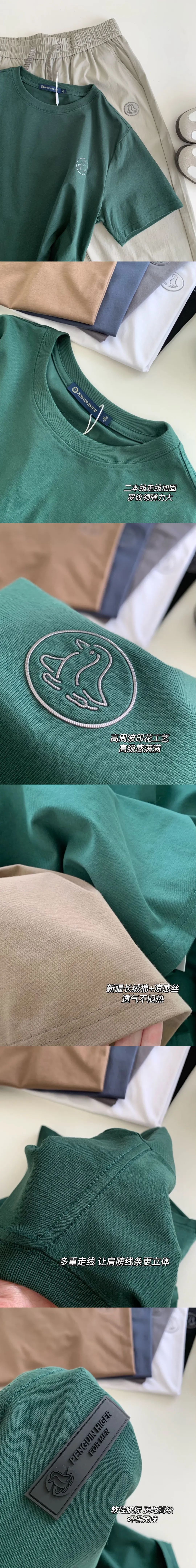 特别定制面料,新疆长绒棉+凉感丝,手感细腻柔软,贴身顺滑舒适,透气不闷汗。经典螺纹弹力领口,不易变形。后背有自带高级感的立体软硅胶标,怎么穿洗都不会脱落。表层浮雕企鹅和英文字母是用的纳米激光雕刻,十分精致,高品质没话说!
