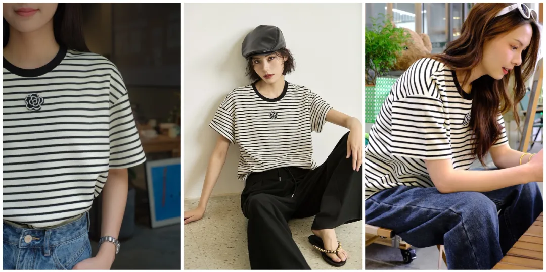 【在团】法国Emayfa山茶花条纹短袖,专柜400+品质,上身就很高级
