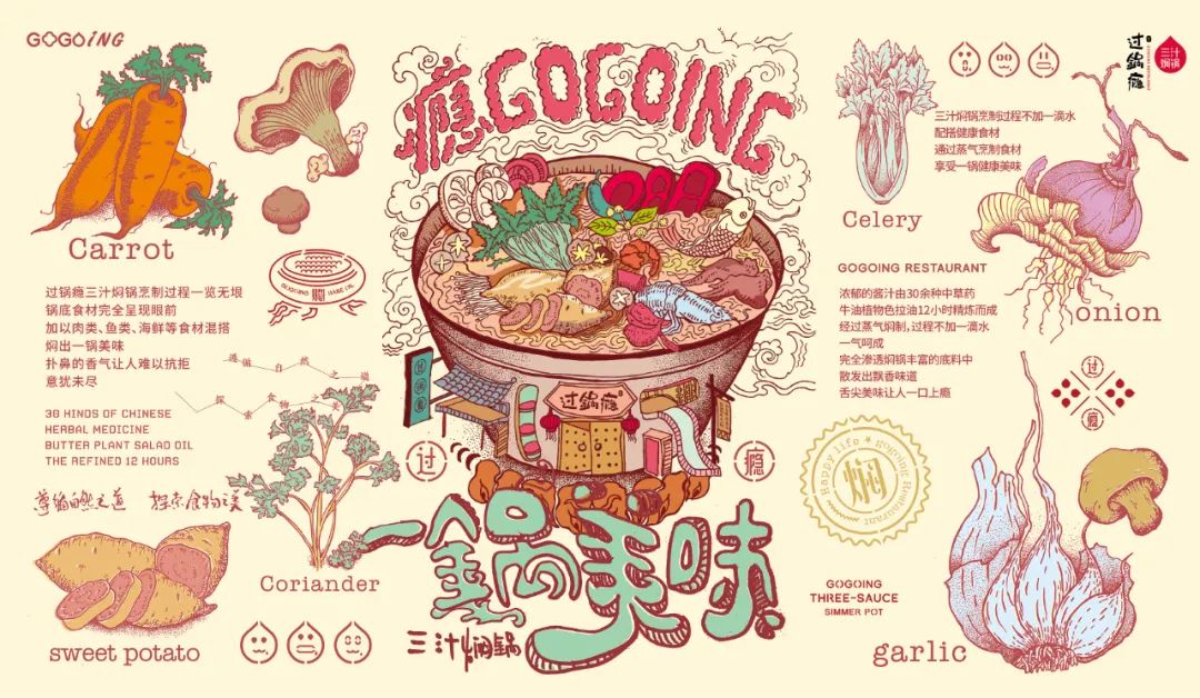 Customer:过锅瘾 / Location: 全国 / SERVICE: 品牌定位、品牌命名、品牌识别形象系统、LOGO设计、VIS系统、SIS空间设计、包装设计、年度品牌顾问 / Time: 2024