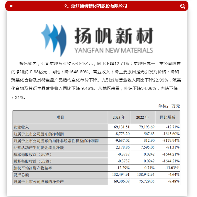 2024年已进入5月,光固化行业上市公司去年的业绩报告纷纷出炉,我们一起来看看这些上市企业对2024年交出了怎样的答卷吧。 1、上海飞凯材料科技股份有限公司 报告期内,公司实现营业收入27.29亿元,同比下降6.13%;实现归属于上市公司股东的净利润1.12亿元,同比下降74.15%。