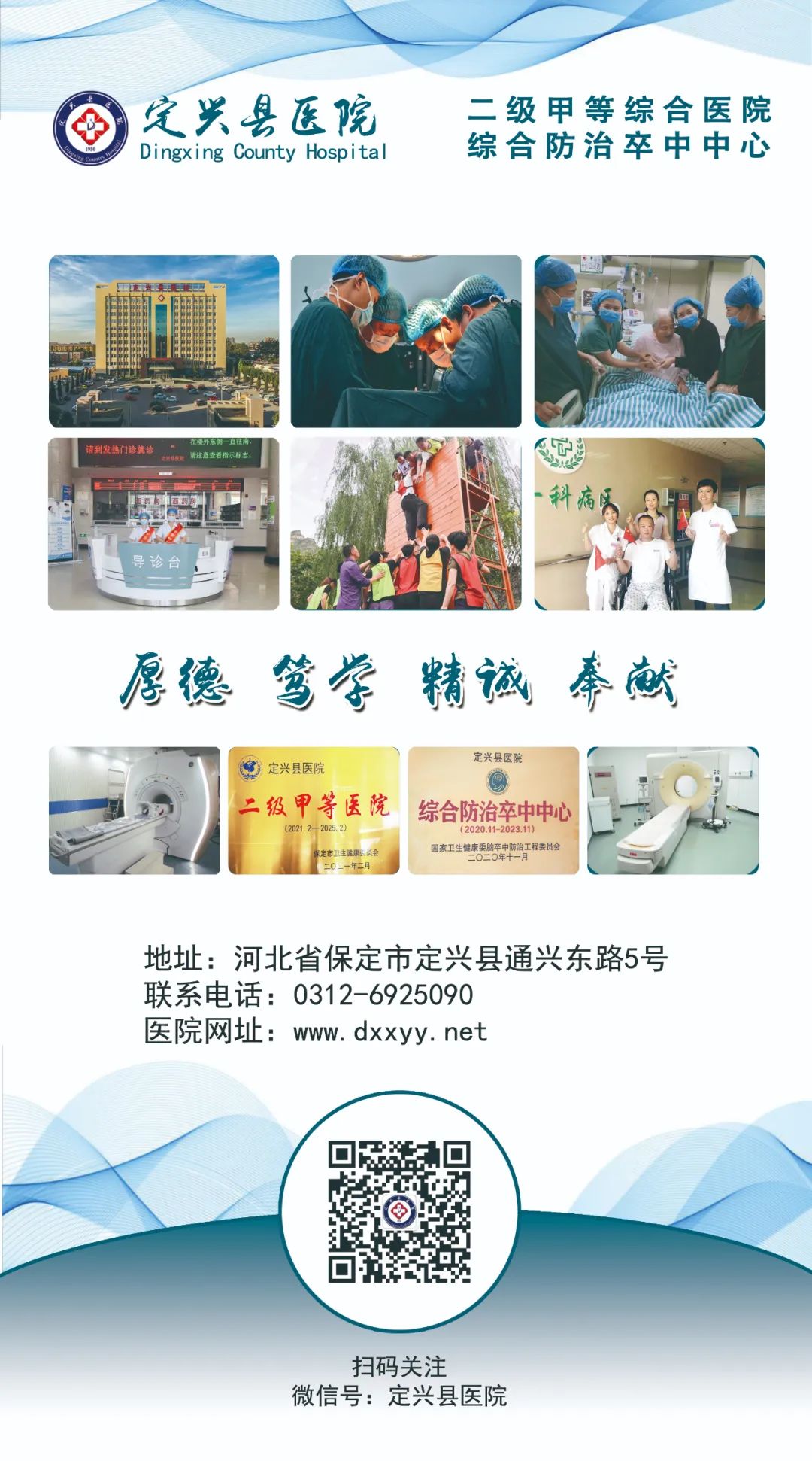 自即日起,您可关注定兴县医院微信公众号,进入公众号选择下方“就诊服务”中的“预约挂号”,挂取所需专业科室专家号即可。