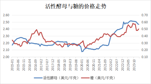 近年来活性剂酵母与糖的价格有上升的趋势。安琪酵母解释自身毛利率降低的原因是:糖蜜成本上升导致毛利率降低。确实是糖的成本近几年来有所上升,但是活性酵母的价格也在上涨。似乎二者有些矛盾。安琪酵母还提到:国内需求疲软,国际复杂多变,行业竞争加剧。