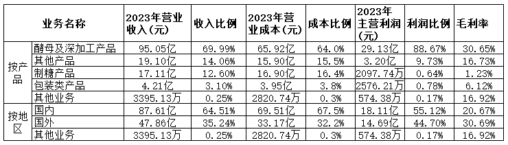 我们从安琪酵母2023年的成本结构中可以看出,原材料是成本核心,合计占成本的70%,可以说,控制了原材料就控制了成本,所以安琪酵母才会在糖蜜的产区布局工厂。