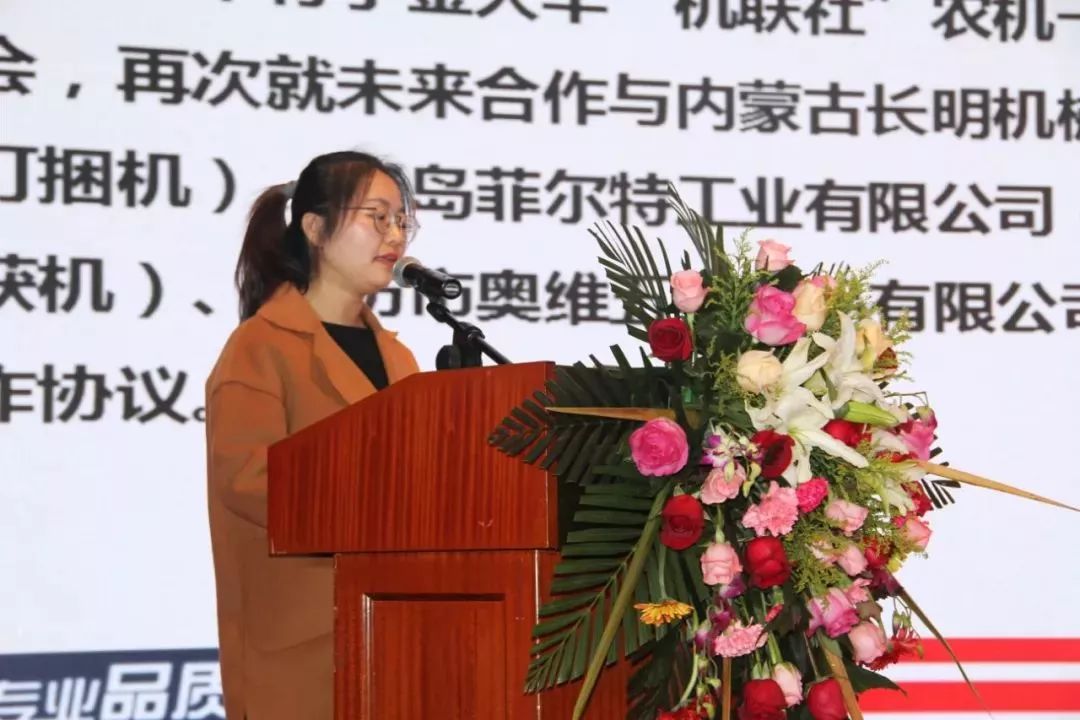 采购总监张甜甜在会上做了2018年经营成果及2019年发展规划演讲,她表示,金大丰坚持24年如一日,专注、专业、专心于农业机械细分领域的收获机械,2018年公司产销各类收获机3800台,实现销售收入5亿元,同比增长36.5%,成功研发了6公斤水稻机、四行青贮机、花生捡拾收获机,优化了原有三行、四行玉米收获机、5公斤水稻机和8公斤小麦机,丰富了玉米机的结构配置,产品可靠性、适应性和智能化都得到大幅提升。实施销售创新,利用金大丰24年如一日研发生产收获机械的经验、360余家销售网络和金质保姆式服务,运作“机联社”,联合主打青贮机的内蒙古长明公司、主打马铃薯和花生机械的青岛菲尔特公司、主打拖拉机的潍坊奥维公司等,形成“资源共享、优势互补、抱团取暖、协同发展” 的大销售共赢模式;强化管理,引进农机通CRM系统管理配件,提升服务。2019年产销和销售收入稳步增长,实现各类收获机械4000台,销售收入6亿元,一方面心无旁骛攻主业-收获机,另一方面通过机联社进行大销售,扩宽产品线,扩大整体规模,增强抗风险能力,通过海外事业部打开国际市场,力争19年实现海外收入2000万元,三年过亿的计划,将收获机做到全国前五名。