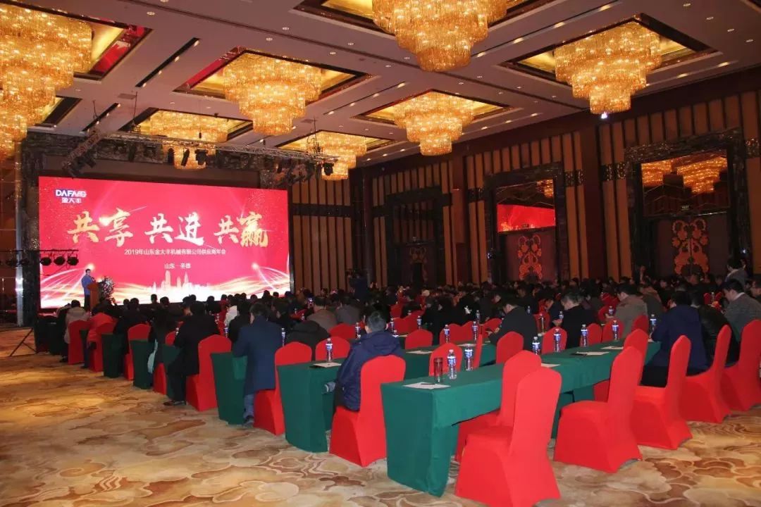 2019年1月18日,山东金大丰机械有限公司隆重召开以“共享 共进 共赢”为主题的2019年供应商年会。潍柴动力、广西玉柴、莱芜鑫昌、沂水兴达、徐州徐轮、青岛北海车轮、青岛征和、河南冰源、潍坊鹤镇机械等来自全国的130多家供应商齐聚兖州山东圣德国际酒店,共襄盛会。公司董事长徐祥谦、副总韩涛、副总仙福礼、副总张昊、技术总监郭和甲、财务总监王继贤、采购总监张甜甜、采购部经理代国洪、质量部经理卞延峰以及有关部门负责人出席本次会议。