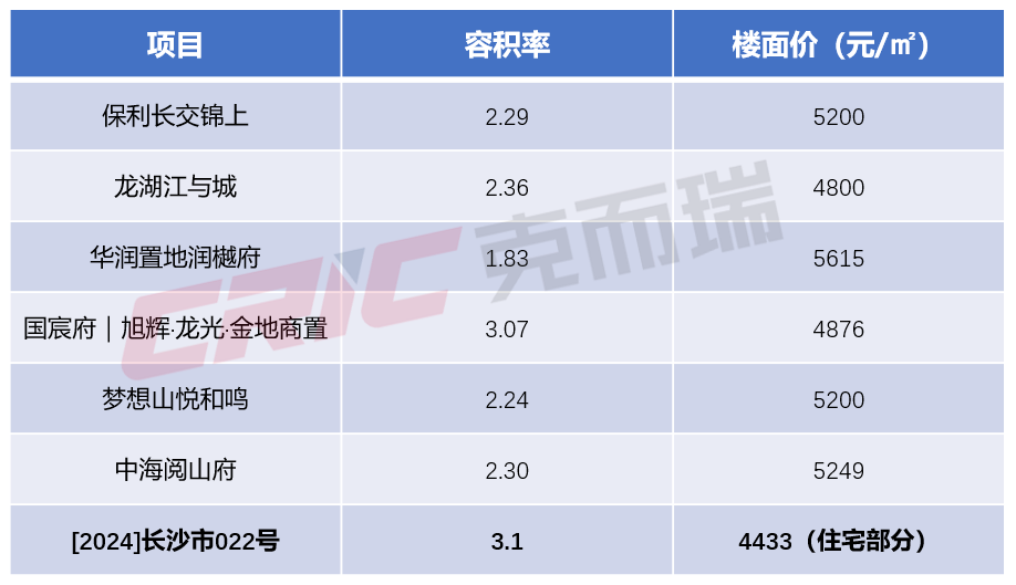 该宗地商业与住宅用地分开计算楼面地价,其中商业部分楼面地价3100元/㎡,其价格不随最终成交价提高而上升,地价分摊降低了房企拿地成本。住宅部分楼面地价4433元/㎡。挂牌宗地的住宅(毛坯)销售均价按长沙市政策进行价格监制。