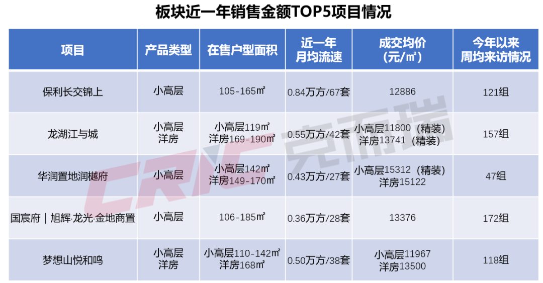 从竞争格局来看,板块内头部房企扎堆入驻,在售项目较多,整体打造宜居改善型产品,以低密、小高层住宅为主。
