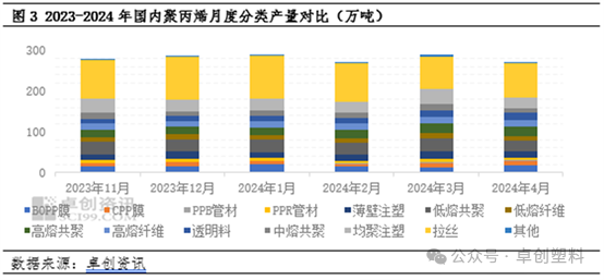 4月市场国内产量缩减明显,需求环比小幅增加,市场来自供需基本面的支撑增强,4月PP价格环比上涨。分品种来看,4月品种产量增减不一,生产企业基于原料成本、市场供应变化以及下游需求表现调整排产比例。