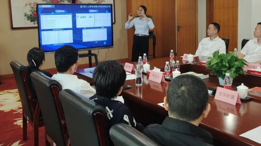 5月8日,古林镇商会服装企业数字化推进工作座谈会召开,浙江云聚智铱数字科技有限公司作为宁波市纺织服装行业中小企业数字化改造总包商牵头单位作经验分享。
