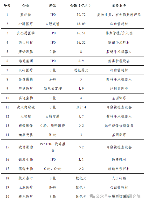 图:2023年度中国医疗器械企业融资金额TOP20
