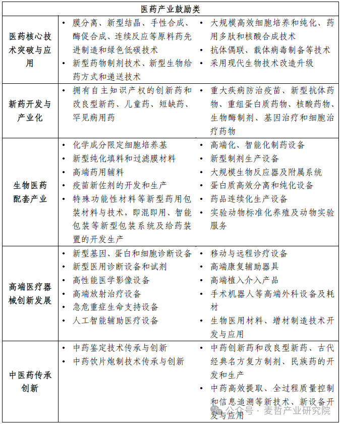 表:医药产业鼓励类