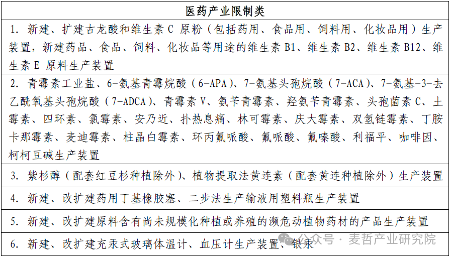 图:医药产业限制类