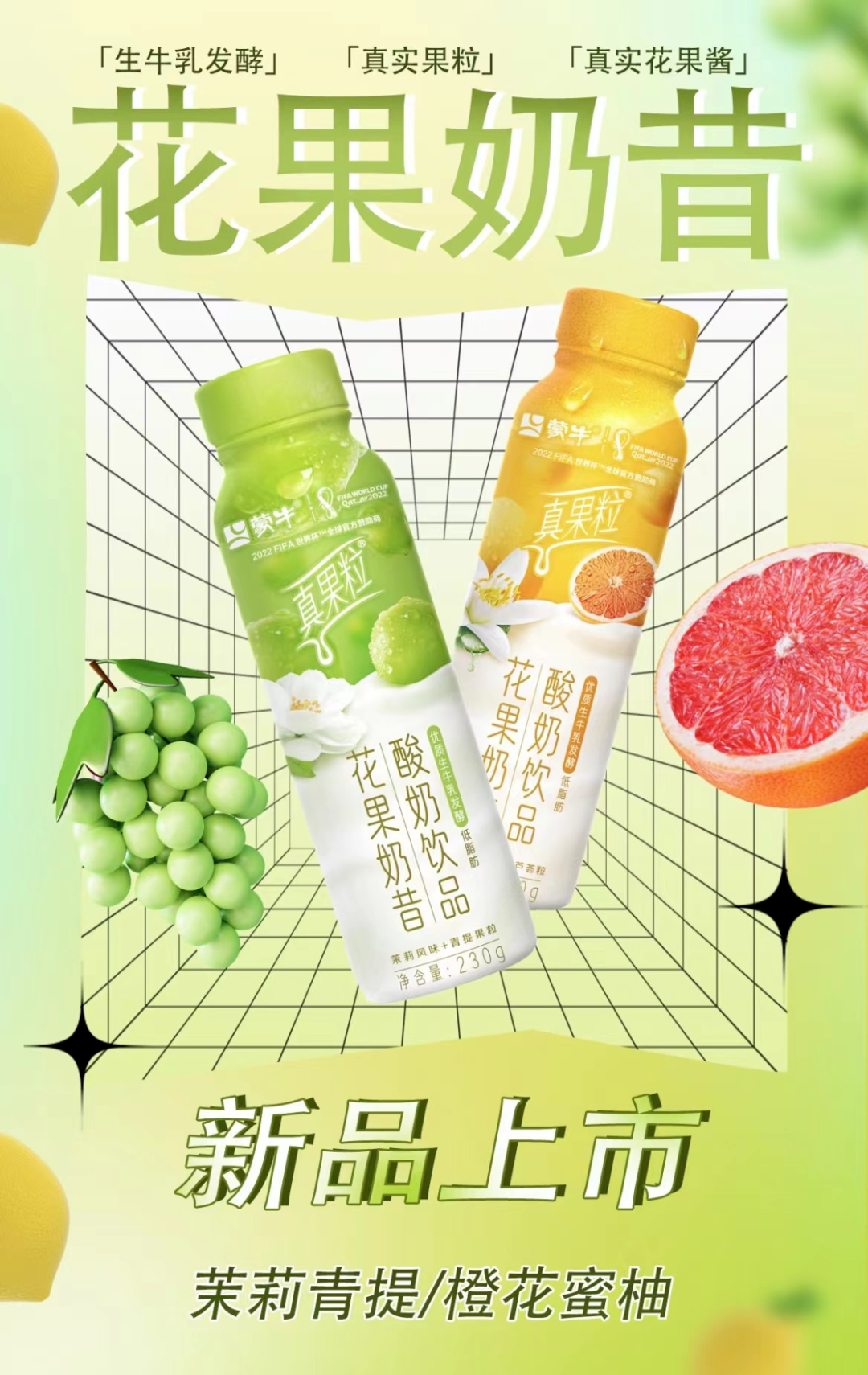 【产品介绍】产品包含新品真果粒花果奶昔、甜牛奶,其他产品包含未来星风味奶、未来星乳酸菌、真果粒花果轻乳、真果粒mini 装、酸酸乳果茶、GO畅等。