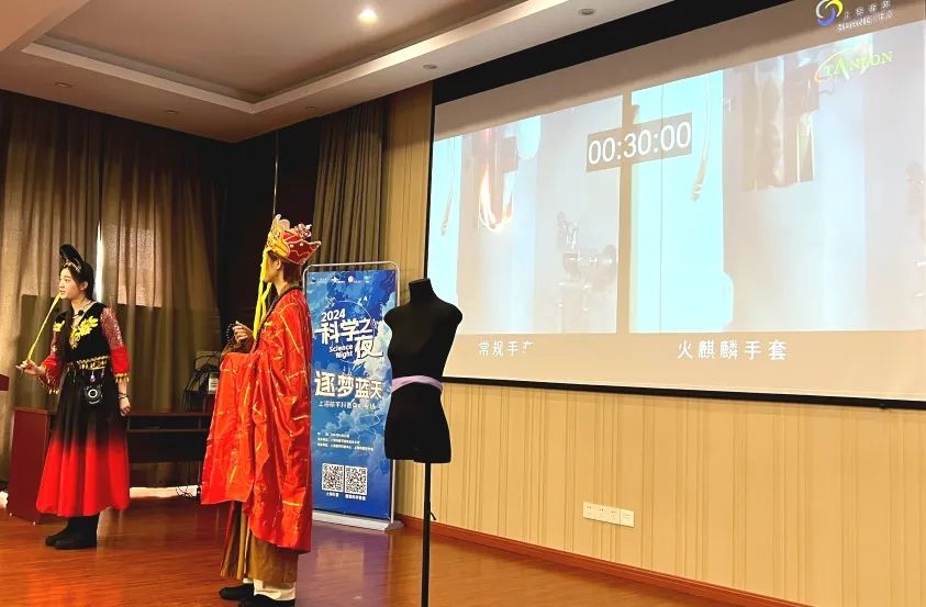 上海纺织博物馆受邀参与科学之夜科学小舞台,通过《翻越火焰山》一出戏科学实验秀,为大家生动介绍纺织黑科技“芳砜纶”面料。