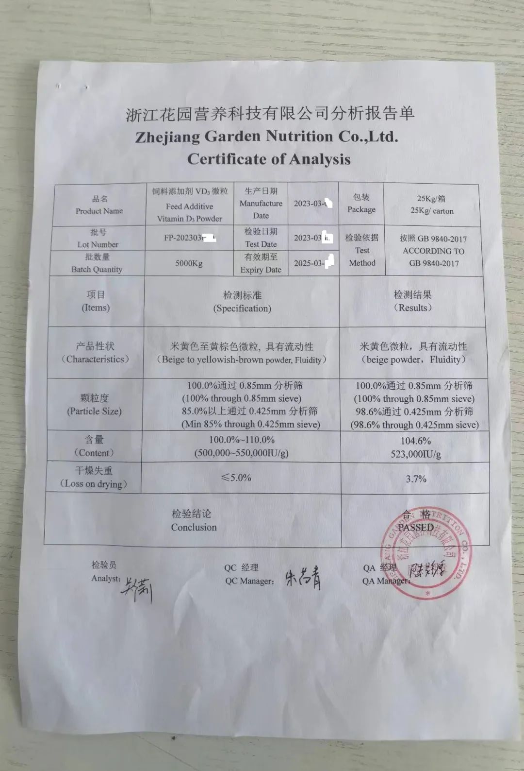 饲料级维生素D3微粒