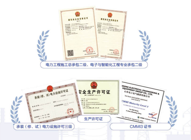 工程公司具备电力工程施工总承包二级、承装(修、试)电力设施许可三级、电子与智能化工程专业承包二级、安全生产许可证、质量环境职业健康一体化认证、综合能源服务认证、节能技术服务认证、合同能源管理服务认证、CMMI三级等资质。
