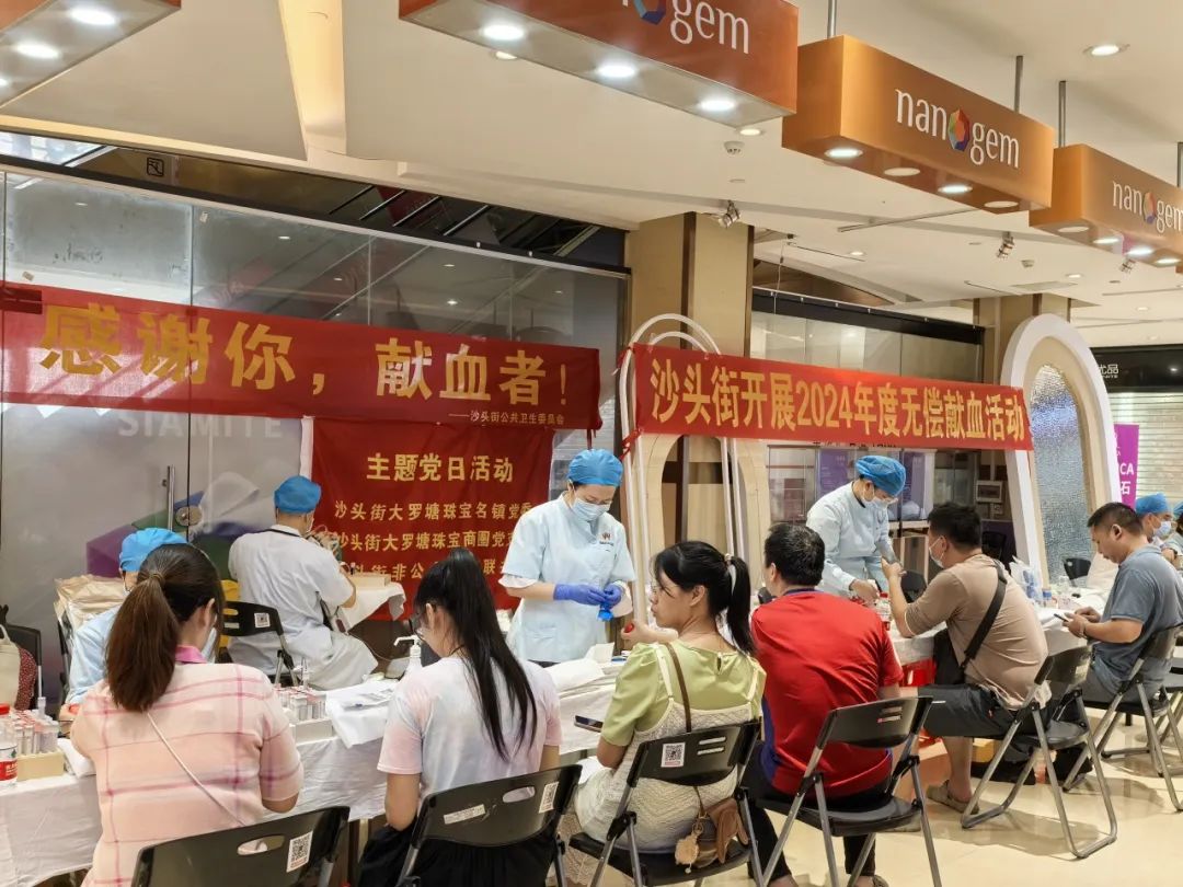 热血汇聚爱心,奉献践行初心。5月8日,沙头街在大罗塘珠宝名镇金俊汇国际珠宝交易中心开展献血活动,大罗塘珠宝名镇辖内企业职工纷纷主动报名,踊跃参加,大罗塘珠宝首饰商会秘书处、会员单位也积极到场参加,以实际行动履行社会责任,充分彰显企业担当。