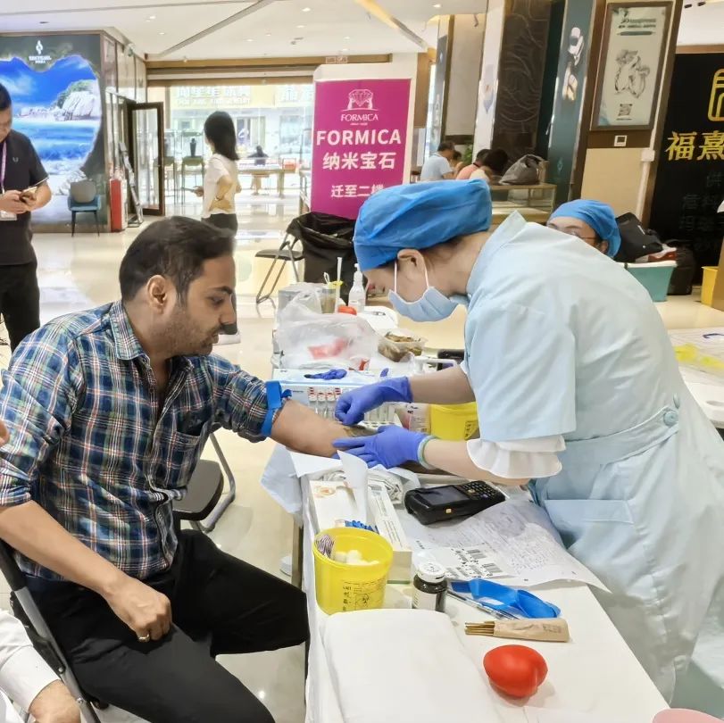 上午9点,在现场工作人员引导下,大家依次进行填表登记、测量血压、初筛检测等流程,挽起袖子,伸出手臂,让流动的血液汇成希望,传递着爱心与温暖。献血队伍中,既有公司高管、中层,也有普通员工,既有初次献血的新人,也有坚持献血多年的老员工,更有外国友人。本次献血活动共有58位爱心人士成功献出热血,共计16000毫升。